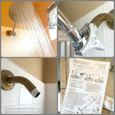 The Aqua Dance 8 Rainfall shower head gives you the feeling of standing in a rain shower. This is a fairly heavy spray that rinses shampoo and conditioner out quickly. The extension arm is easily adjustable by just loosening the knob and re-tightening. My husband loved that it came with complete step by step instructions and included Teflon tape, so there was nothing to run out and buy to install the shower head.