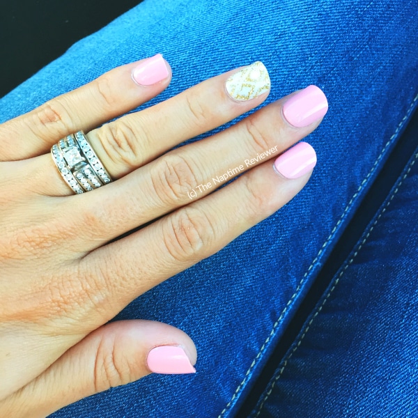 Each nail comes ready-to-go with adhesive on the back. You simply peel off the clear backing and stick the nail onto your nail bed. The most difficult part of the whole process is finding which nails fit your nail beds. Each pack comes with 24 press-on nails to fit just about any size fingers. I like to line all of my nails up in size order before I put them on, just to avoid any issues.
