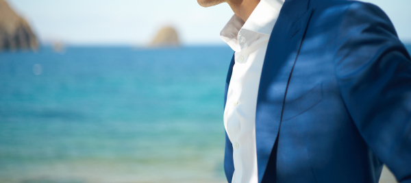 Fashion portrait of a handsome man in blue suit