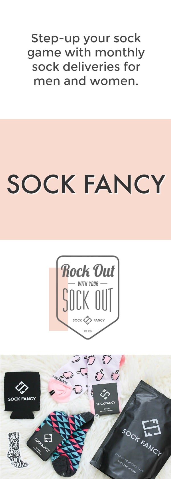 Sock Fancy is a fun online service that provides subscribers with unique socks delivered to your door every month. If you are looking to step-up your sock game, or just simply love being surprised every month, this is great subscription box for you.