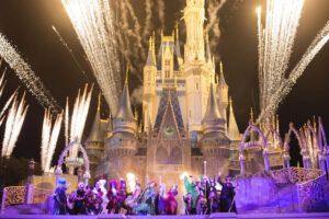 New in 2015, the “Hocus Pocus Villain Spelltacular,” show during Mickey’s Not-So-Scary Halloween Party at Magic Kingdom Park includes the mischievous Sanderson Sisters from Disney’s Hocus Pocus, who throw an evil Halloween party that features appearances by Dr. Facilier, Oogie Boogie, Maleficent and other great Disney villains, along with dancers, projections and special effects. Walt Disney World Resort is located in Lake Buena Vista, Fla. (Mariah Wild, photographer)